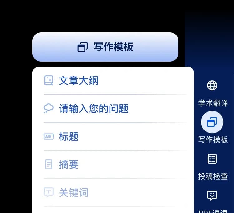 功能设计覆盖写作、改稿、投稿等诸多步骤,结合期刊审核特性与中文写作者习惯,提供语言与技术的双重辅助。
