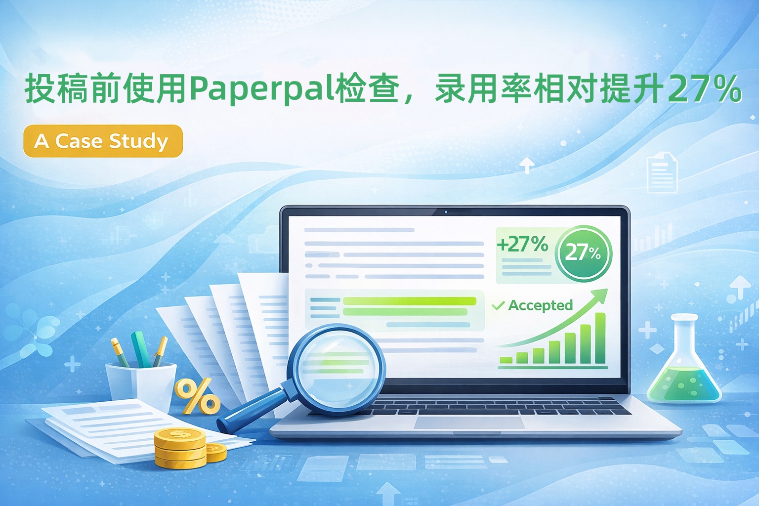 一项由Wolters Kluwer旗下国际医学期刊Medicine与Paperpal联合开展的12个月队列研究,提供了一个值得关注的数据:在投稿前使用Paperpal检查工具的稿件,录用率相对提升最高达27%。
